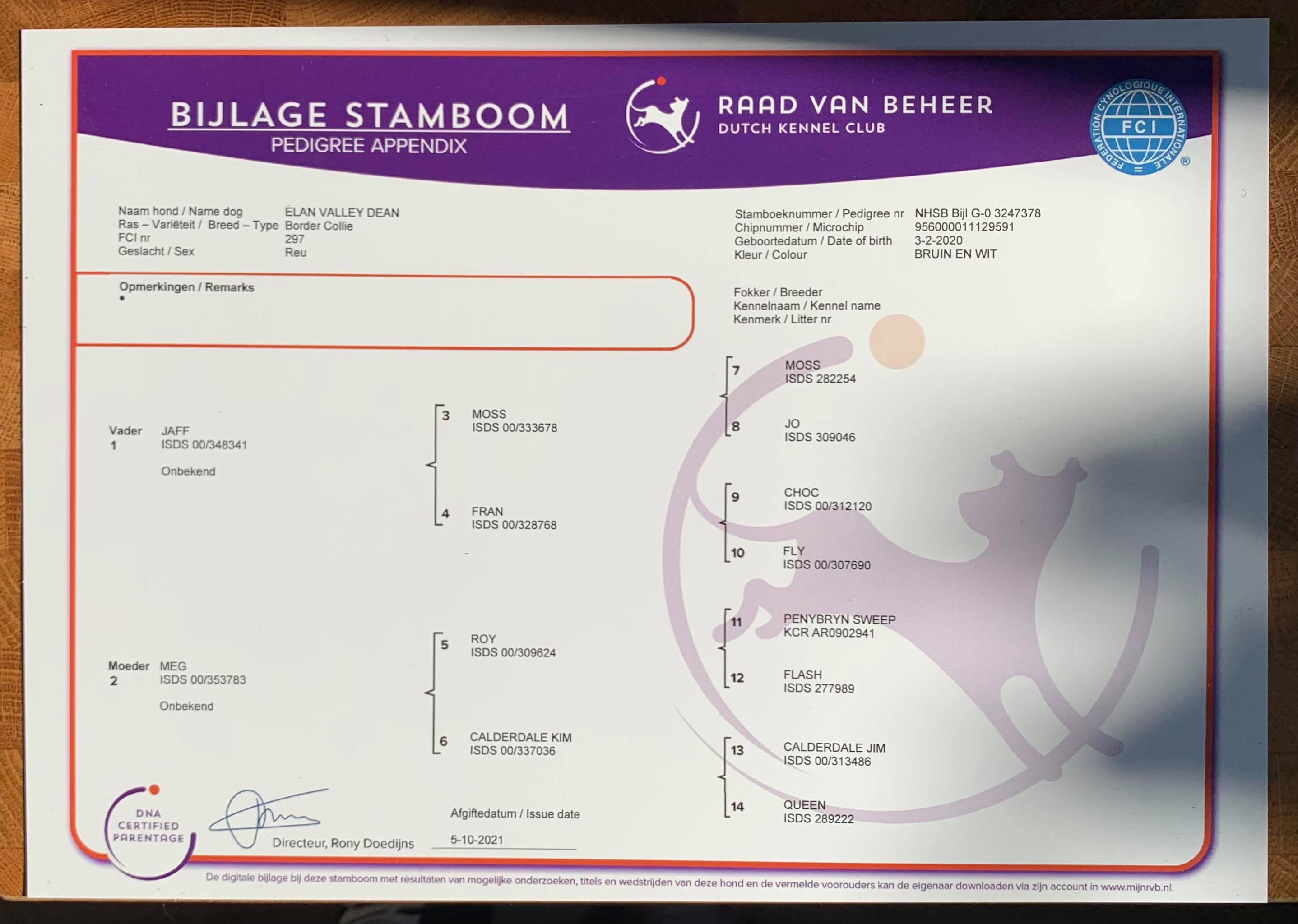 DNA: vrij via VHL Genetics en MyDogDna, behalve drager EAOD, 20-04-2021 en 04-03-2022